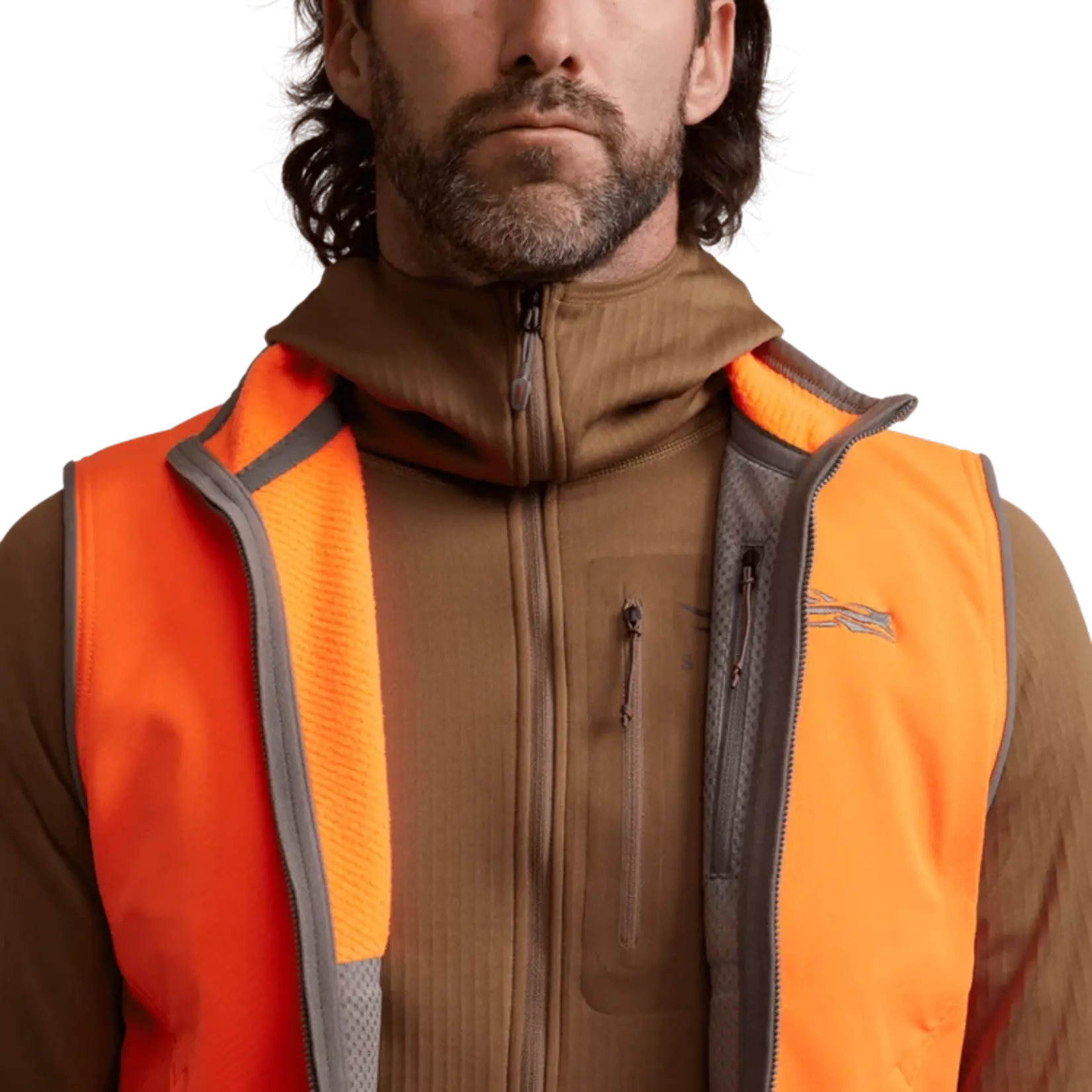 A fleece vest built to take a beating. A double weave stretch fleece handles rugged environments and gusts with ease while a DWR coating mitigates unexpected moisture during the hunt. The Alpha Fleece Vest sports a seamless shoulder construction and intentionally positioned zippered pockets to ensure comfort and accessibility while wearing a pack.